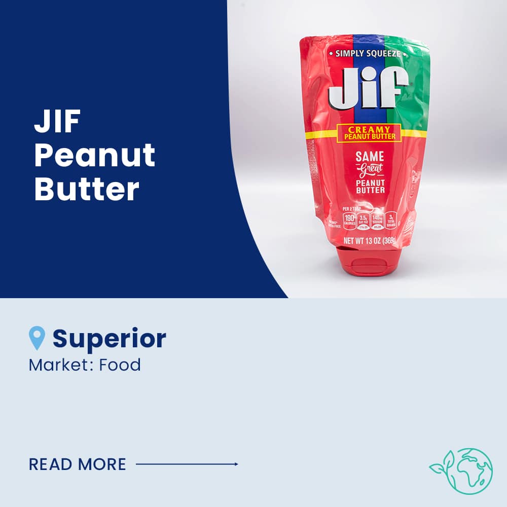 Exploring packaging options to drive new eating occasions and reinvigorate sales, JIF settled on “Stand-Cap” technology, licensed by a key converting partner — exemplifying how flexible packaging can leverage its inherent, sustainable impact and versatility to take share from rigid plastics. JIF’s flexible package uses 63% less plastic, 61% less fossil fuels, 62% less greenhouse gas emissions, 76% less water, and 52% less landfill waste than its rigid plastic container. These improvements align with CNG’s mission to create packaging that helps support the health of our planet.